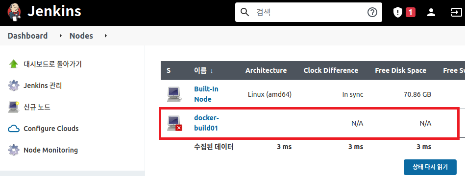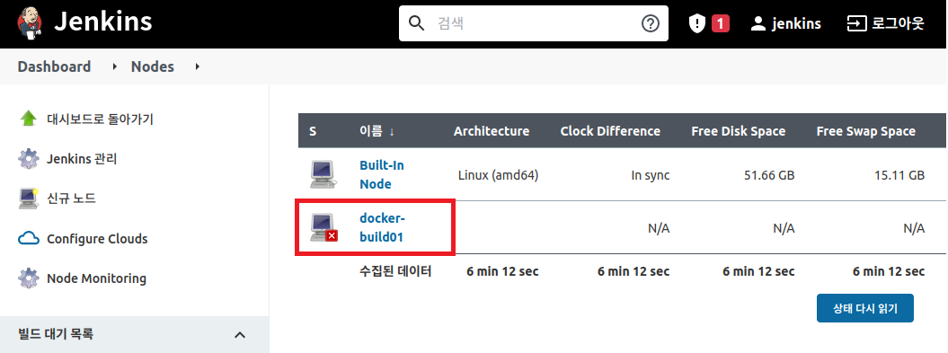 실행이 완료되면 Jenkins 노드 상태 페이지에서 새로고침 한다.
