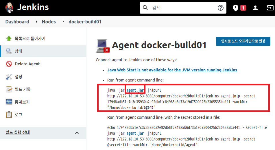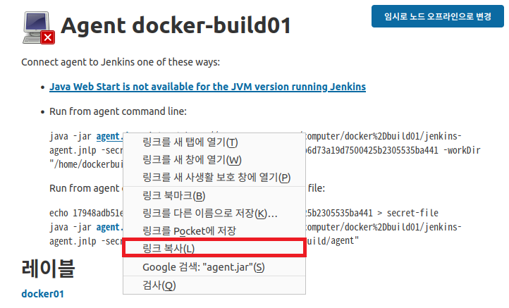 앞서 생성한 docker-build01 에이전트를 클릭한다.