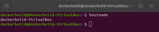 hostname 명령을 실행해서 해당 가상 머신의 호스트명을 확인한다. dockerbuild-VirtualBox로 되어 있다.