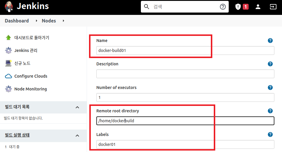 첫 번째 Docker 빌드 에이전트이므로 docker-build01로 지정했다.
