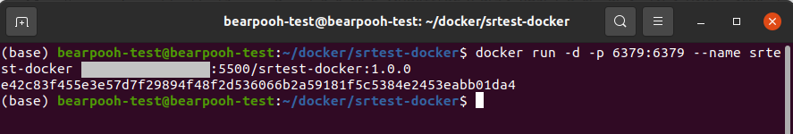$ docker run -d -p 6379:6379 --name srtest-docker \