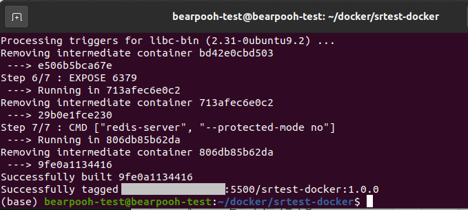 $ docker build -t 사설저장소주소:포트/srtest-docker:1.0.0 .
