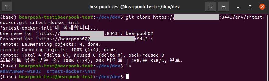 $ git clone .git경로 생성할폴더이름