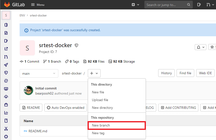 프로젝트와 브랜치를 생성하고, 해당 저장소에 코드를 커밋한다.