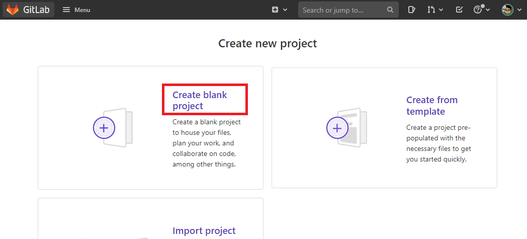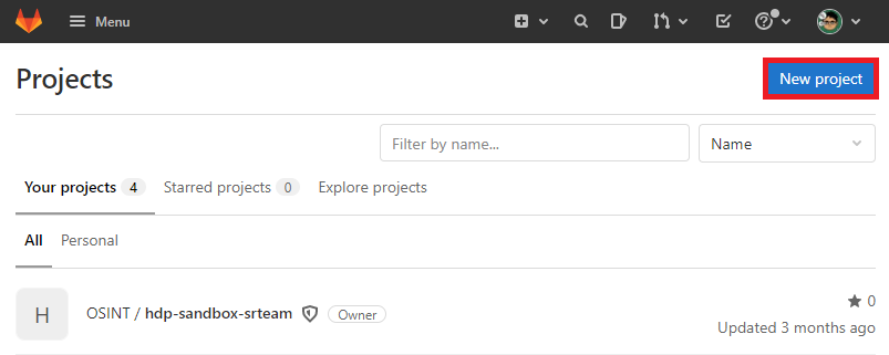 GitLab의 우측 상단에 있는 New Project 버튼을 클릭한다.
