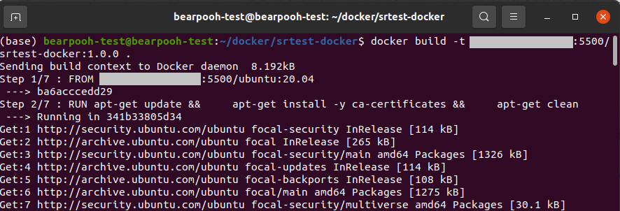 $ docker build -t 사설저장소주소:포트/srtest-docker:1.0.0 .