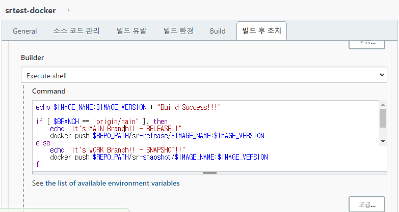 빌드 성공 여부 환경 변수 등록