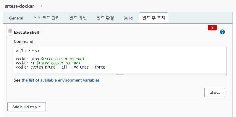 다시 Add build step을 클릭하고 Execute shell을 선택한다.