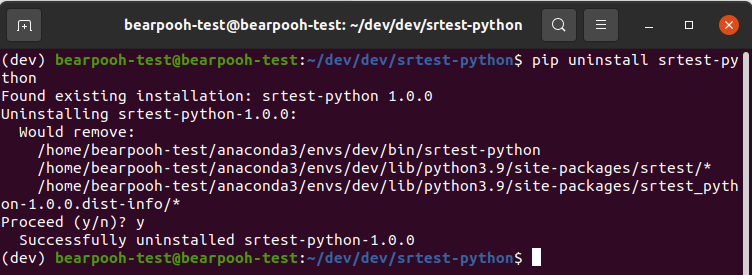 $ pip uninstall srtest-python