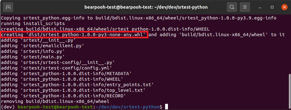 $ pip install dist/srtest_python-1.0.0-py3-none-any.whl