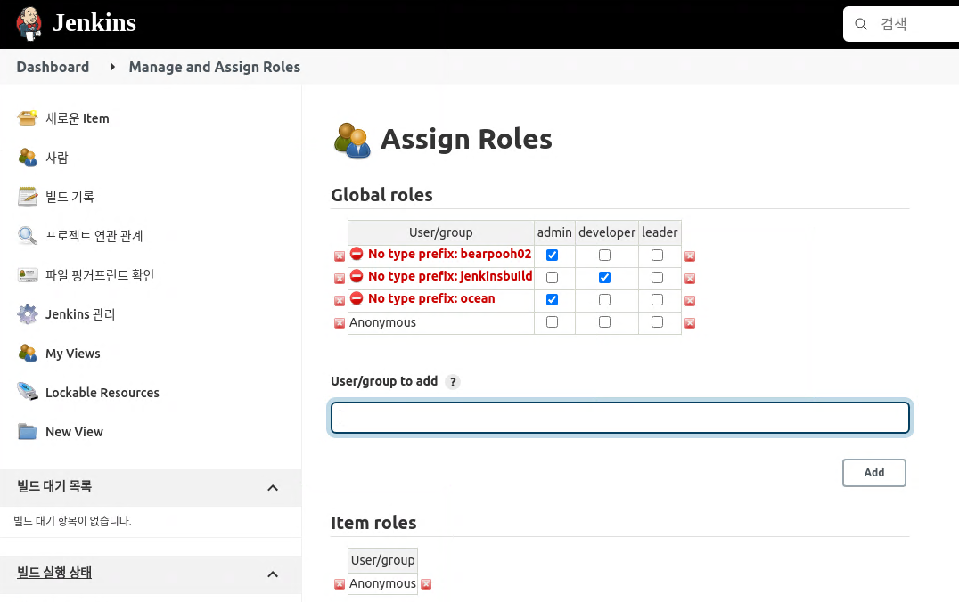 Assign Roles에 다시 들어가보면 각 계정 앞에 No type prefix:라고 표시된다.