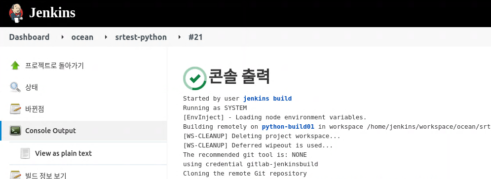 Developer 권한을 적용한 jenkinsbuild 계정으로 테스트한다.