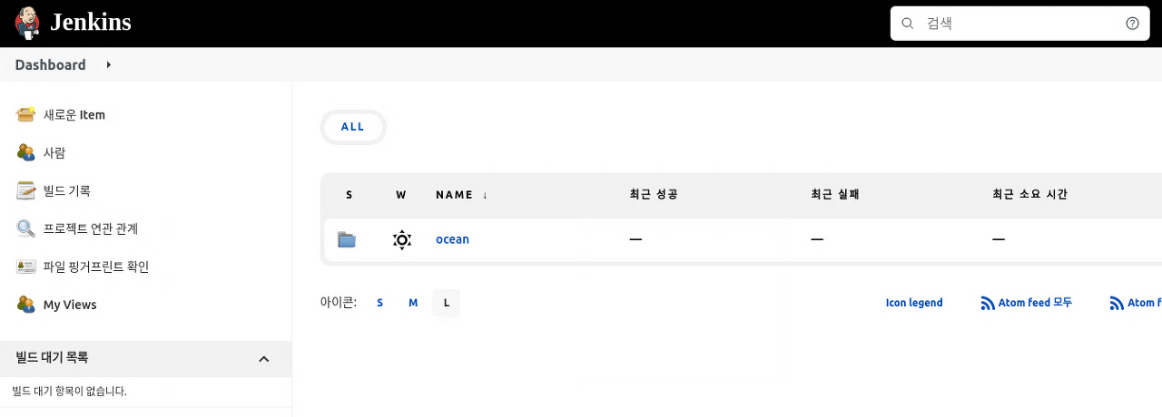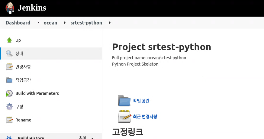 관리자 권한이 아니기 때문에 로그인하면 좌측에 Jenkins 관리 항목이 보이지 않는다.