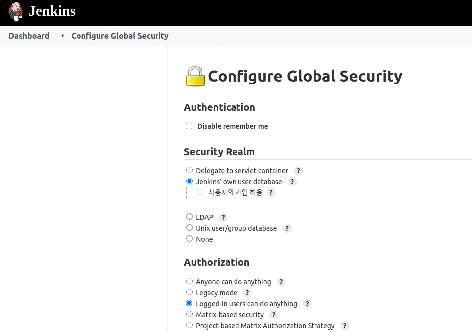 Jenkins의 권한 관리 모드 변경