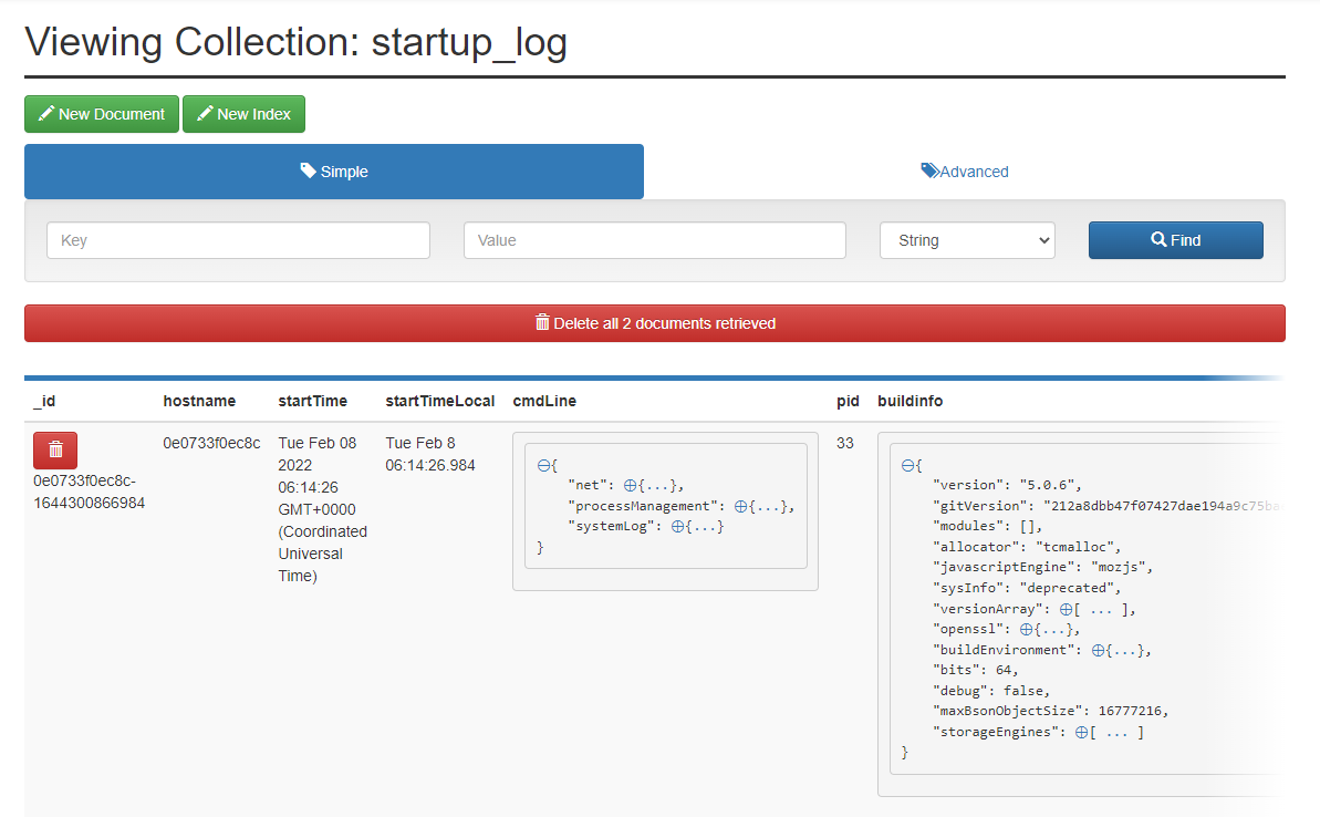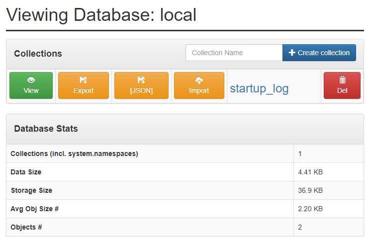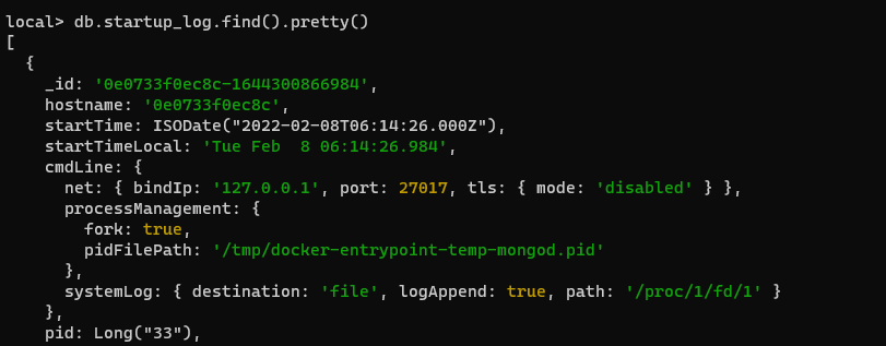 해당 데이터베이스에는 startup_log라는 Collection (Table)이 존재한다.