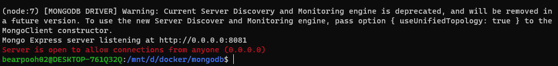 docker-compose.yml 파일에 재시작 설정이 always 로 되어 있기 때문에, mongo-express 컨테이너는 반복적으로 재시작하면서 연결을 시도한다.