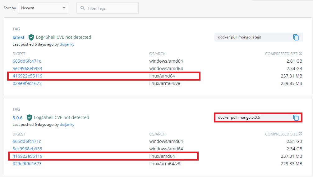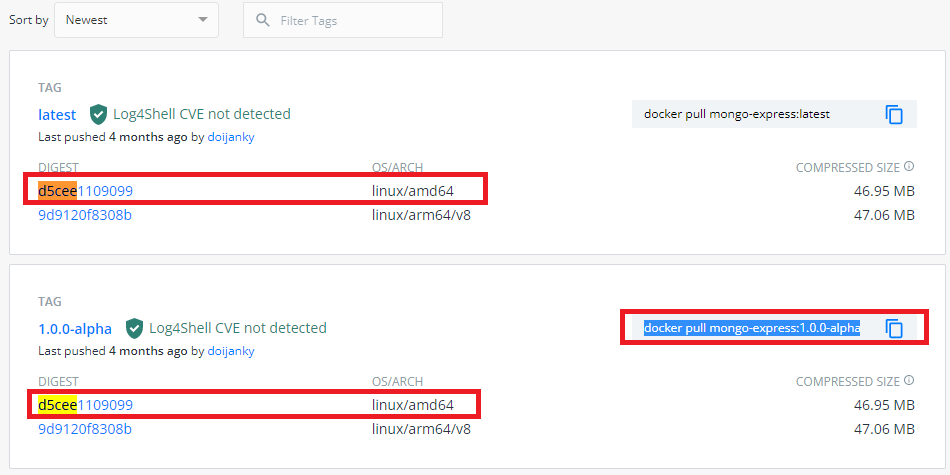 latest 태그의 DIGEST와 동일한 해시를 갖는 버전을 확인하면 된다.