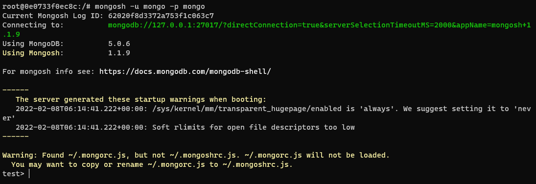 $ docker exec -it mongodb_mongodb_1 /bin/bash