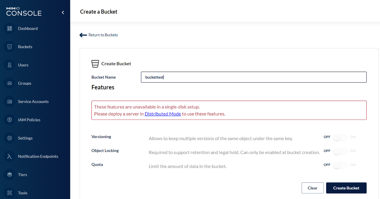 Bucket은 MinIO에서 생성할 수 있는 최상위 디렉토리의 개념이다.