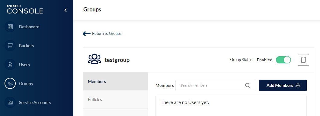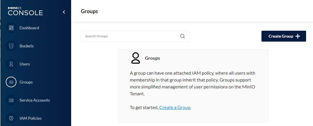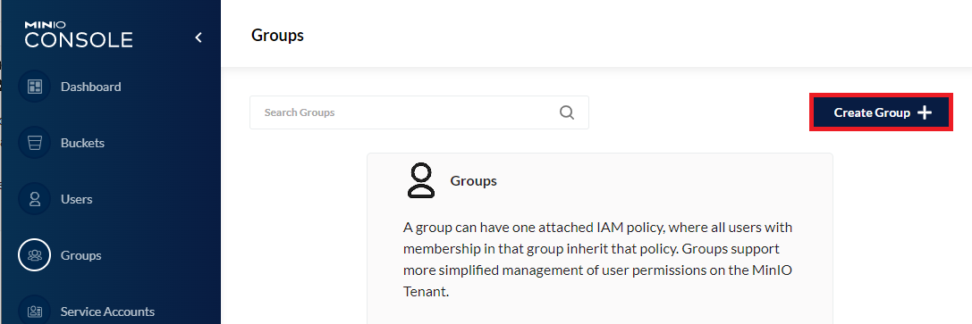 MinIO에서는 사용자들을 분류 기준에 맞게 묶어서 관리할 수 있는 Group 기능을 제공한다.
