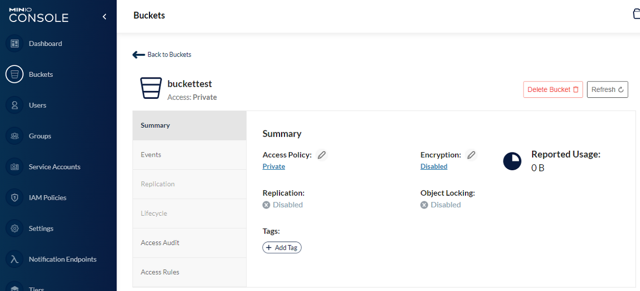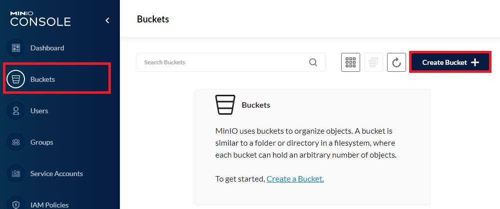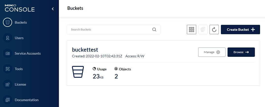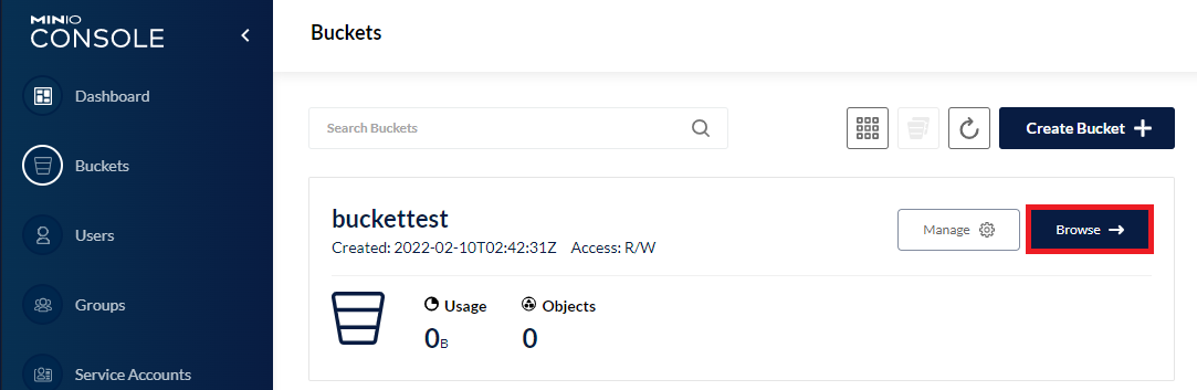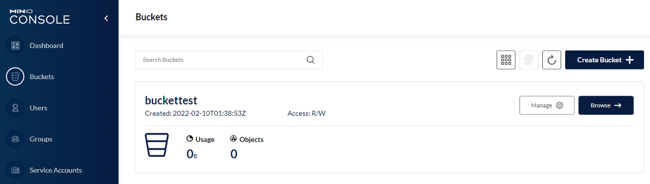 Bucket은 MinIO에서 생성할 수 있는 최상위 디렉토리의 개념이다.