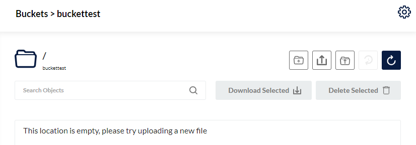 좌측 상단의 폴더 경로에서 buckettest를 클릭하면 생성한 폴더가 사라진다.