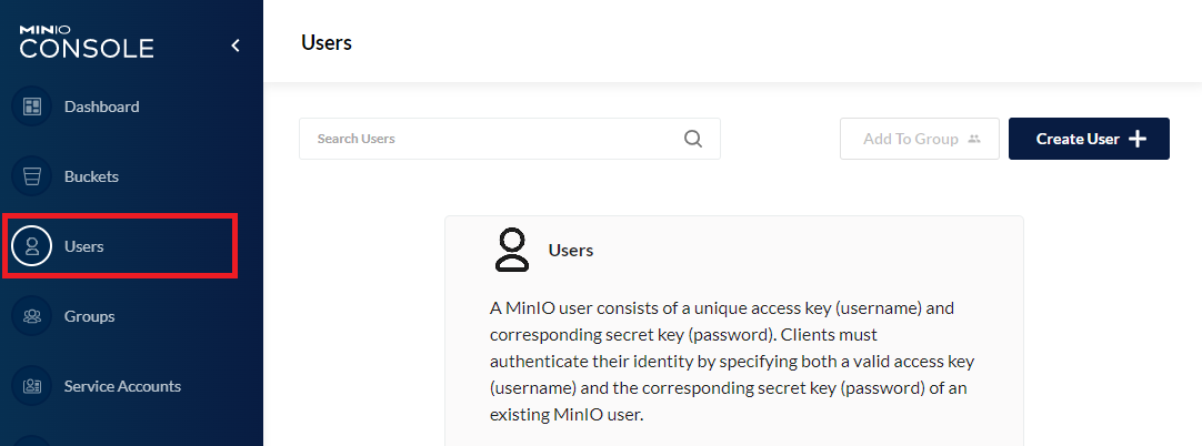 MinIO 역시 다른 서비스와 같이 계정 관리 기능을 제공한다.
