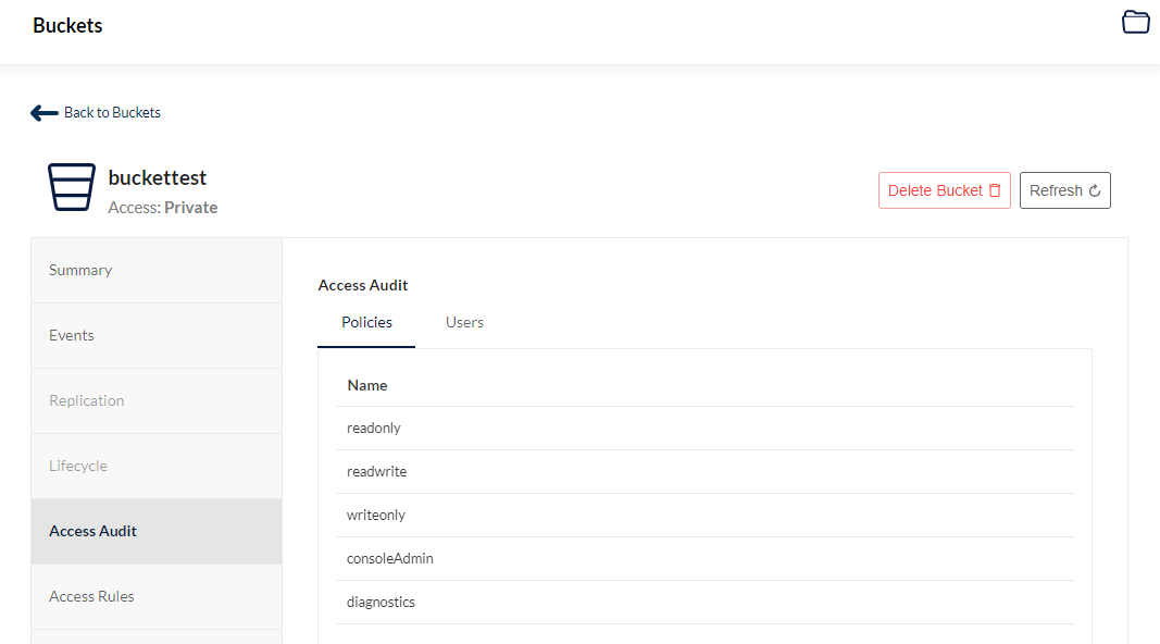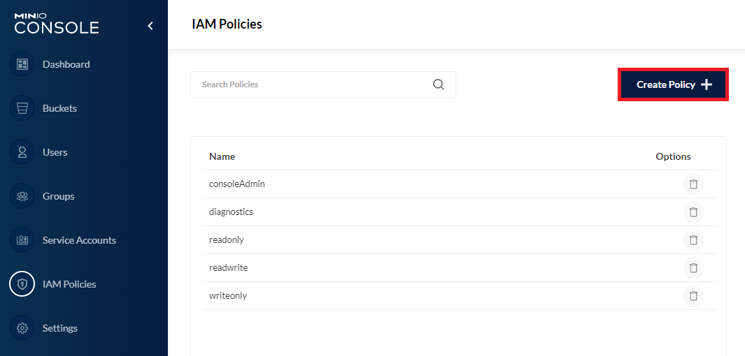 MinIO에서 기본적으로 제공하는 Policies의 종류는 다음과 같다.