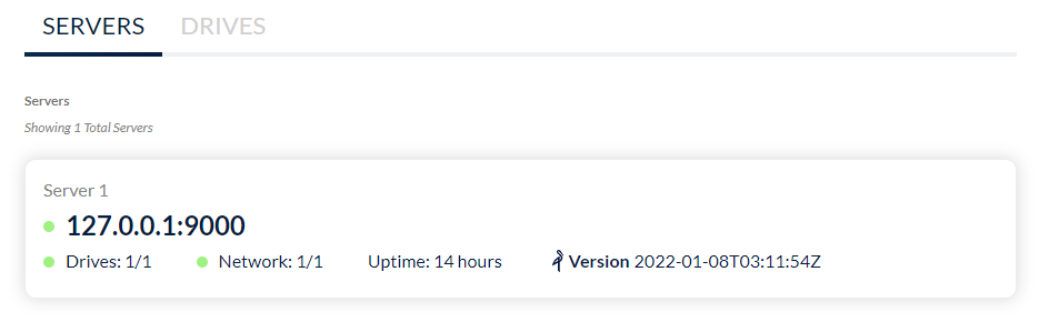 Drives - 해당 MinIO 서버에 연결 된 스토리지 (드라이브) 개수