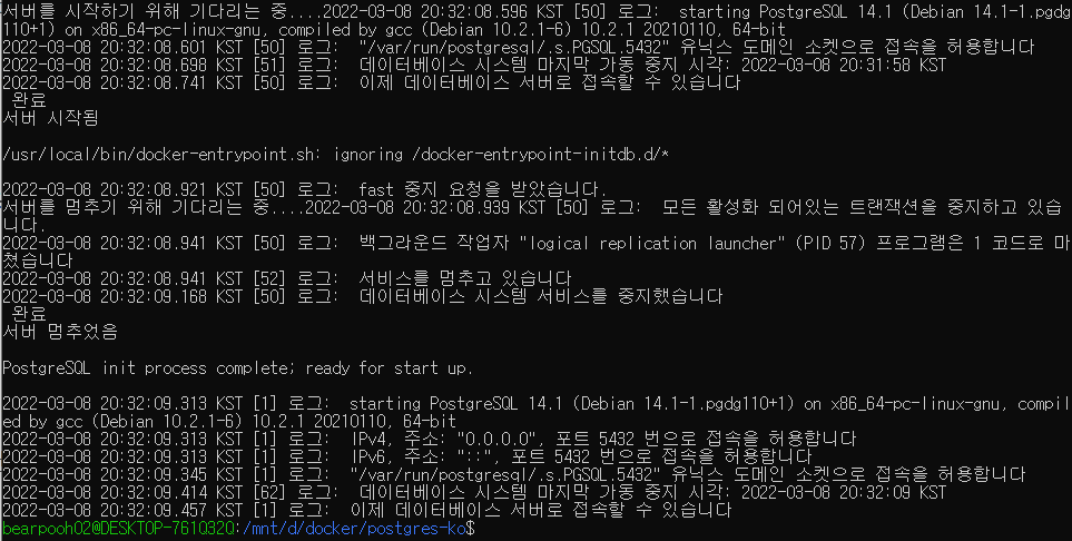 $ docker build -t postgres-ko:14.1 .