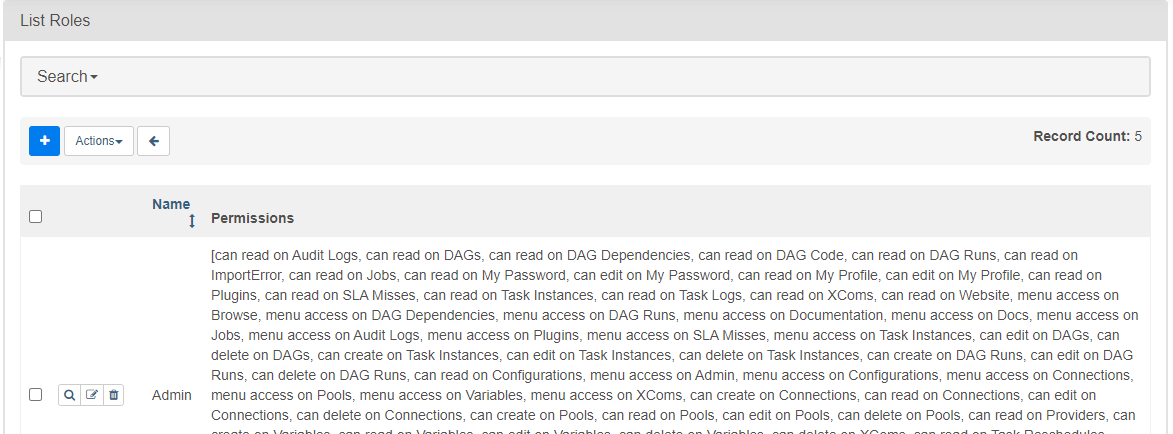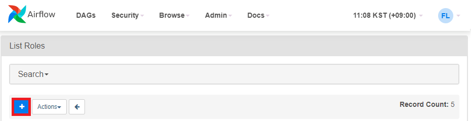AirFlow의 역할 관리는 Security 메뉴의 List Roles에서 제공한다.
