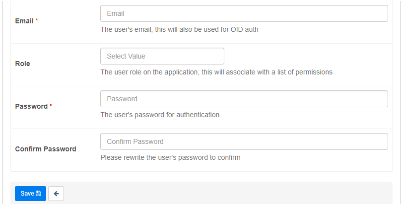 Password, Confirm Password - 사용자 계정의 비밀번호
