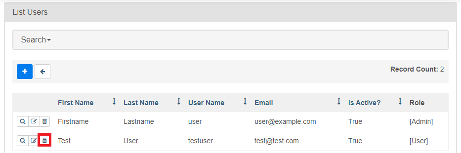 List Users에서 계정 좌측의 아이콘 중에 휴지통 모양의 아이콘을 클릭한다.