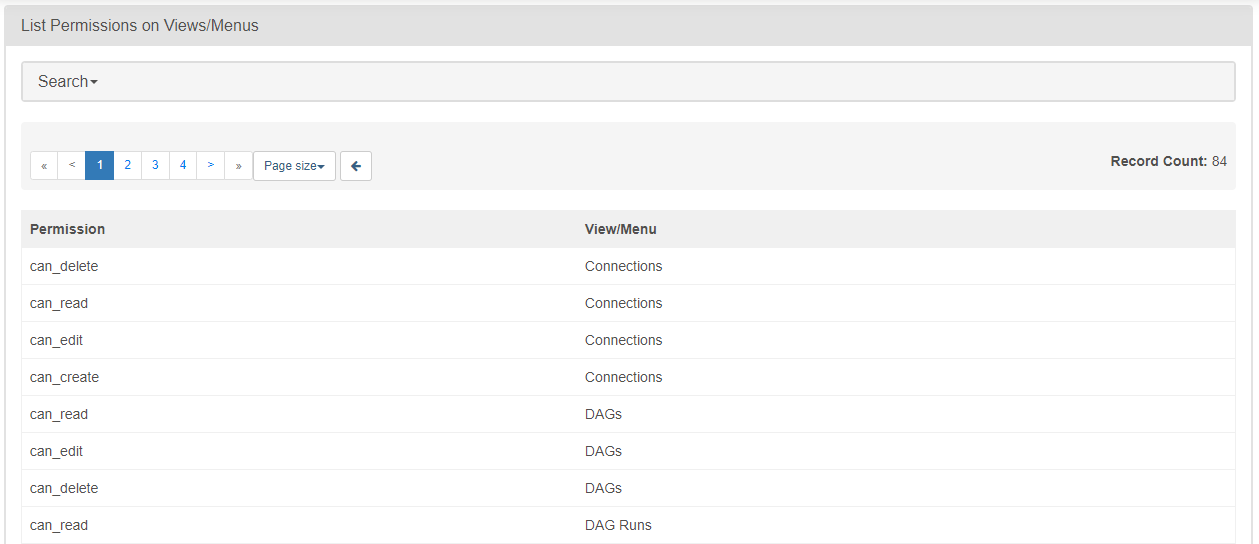 Permission on Views/Menus를 클릭하면 AirFlow에서 제공하는 메뉴에 부여 된 권한 목록들을 확인할 수 있다.