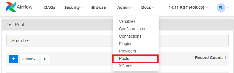 AirFlow의 Admin - Pools 메뉴를 클릭한다.