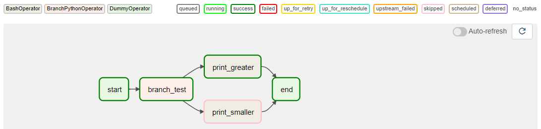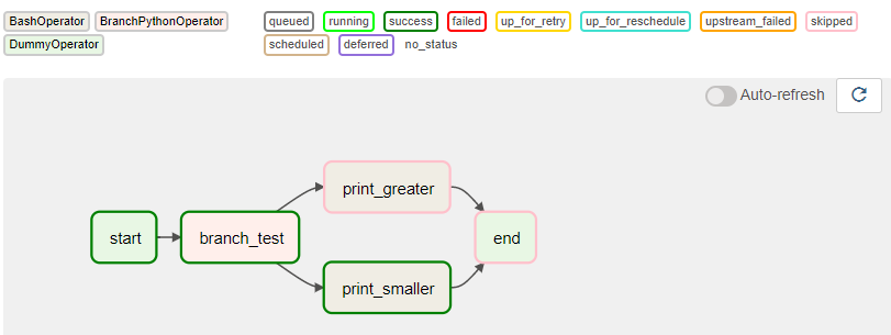 DAG를 확인해보면 print_smaller를 실행하고 print_greater를 생략한 것을 확인할 수 있다.