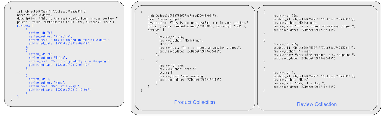 레퍼런스 방식에서 언급했듯이 각 Document들은 별도의 Collection으로 구분하는 것이 권장 된다.