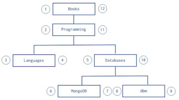 { _id: "Programming", parent: "Books", left: 2, right: 11 },