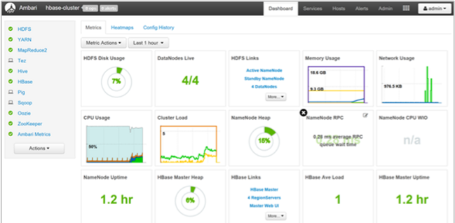 아래 그림 처럼 Hadoop (+ HDFS, MapReduce2, YARN), Zookeeper, Spark, Hive, HBase 등을 통합 관리할 수 있다.
