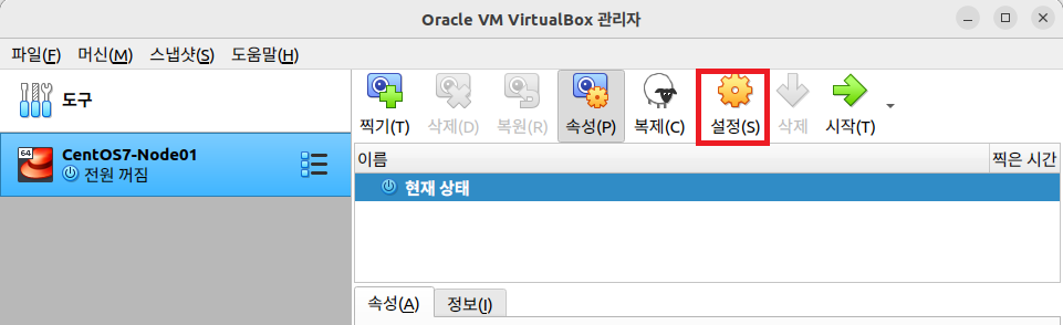 생성한 스냅샷은 이후 설정 과정에서 문제가 발생했을 경우 복원 지점으로 활용한다.