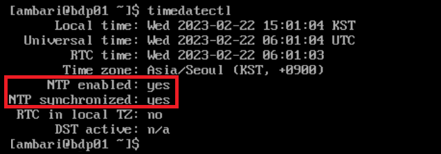 $ timedatectl # ntp 동작 여부 확인