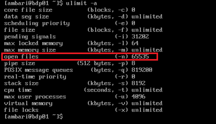 ambari soft nofile 65535 # open file 수