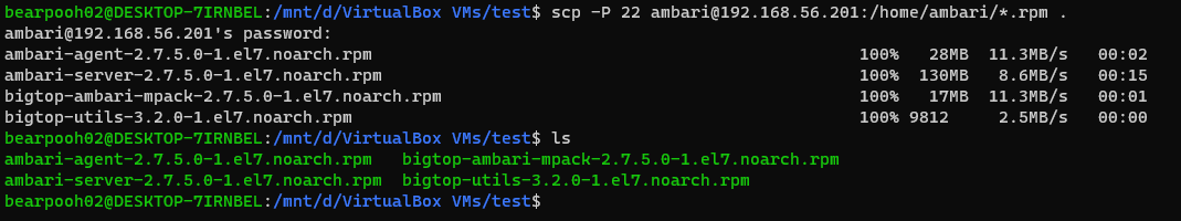 $ scp -P 22 ambari@192.168.56.51:/home/ambari/*.rpm .