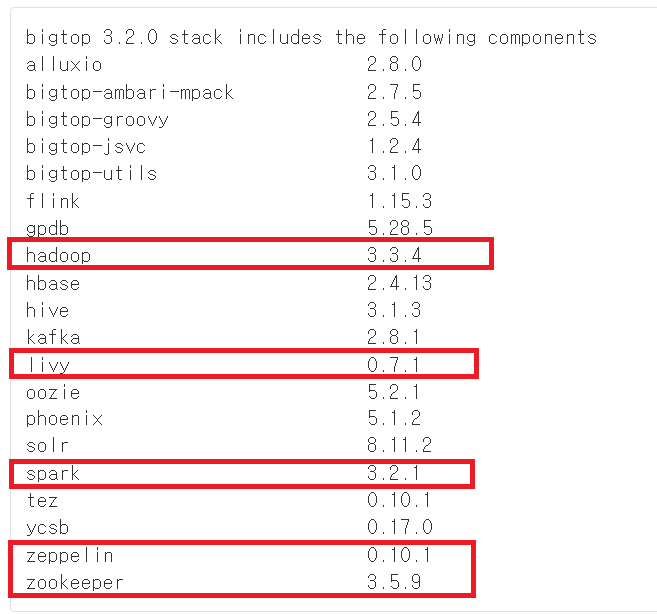 특히 Hadoop과 Spark은 3.x 버전을 제공한다.