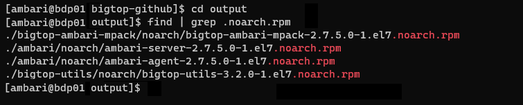 아래 과정을 통해 Ambari 설치에 필요한 rpm 파일을 빌드한다.
