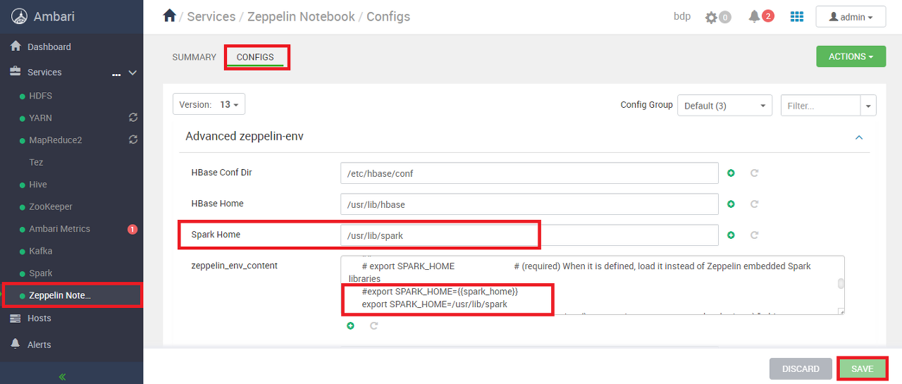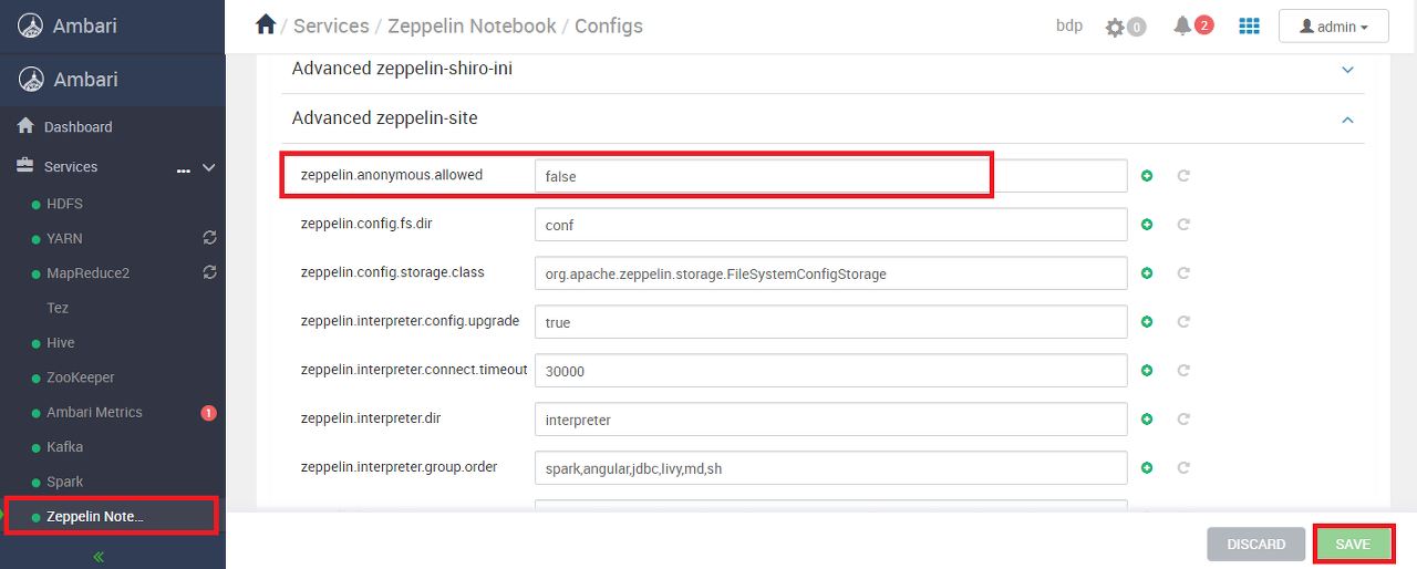 Ambari의 Zeppelin 설정 화면에서 값을 변경한다.