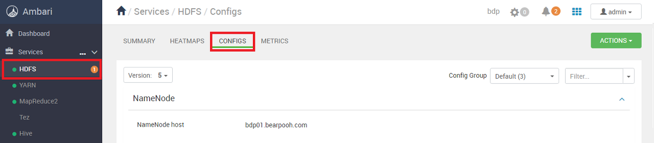 HDFS의 CONFIGS 화면에 진입한다.
