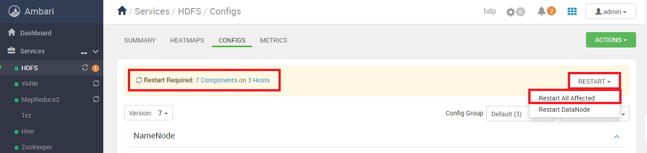 Ambari UI에서 설정 변경