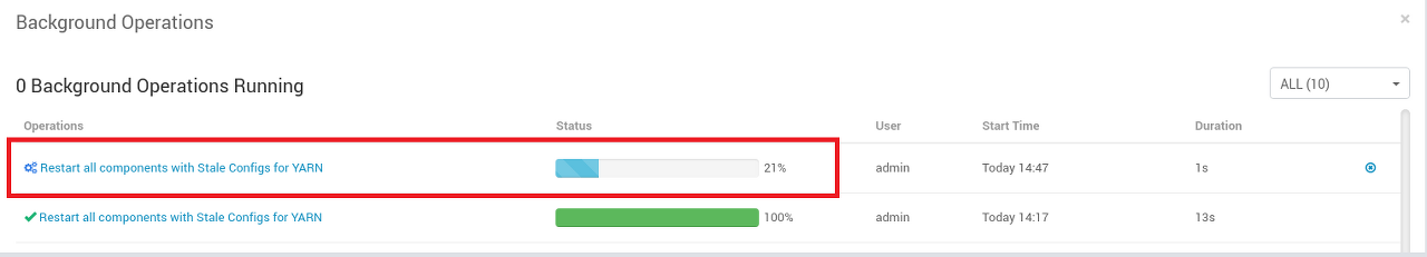 RESTART 버튼을 확장해서 Restart All Affected를 클릭한다. YARN이 재시작된다.