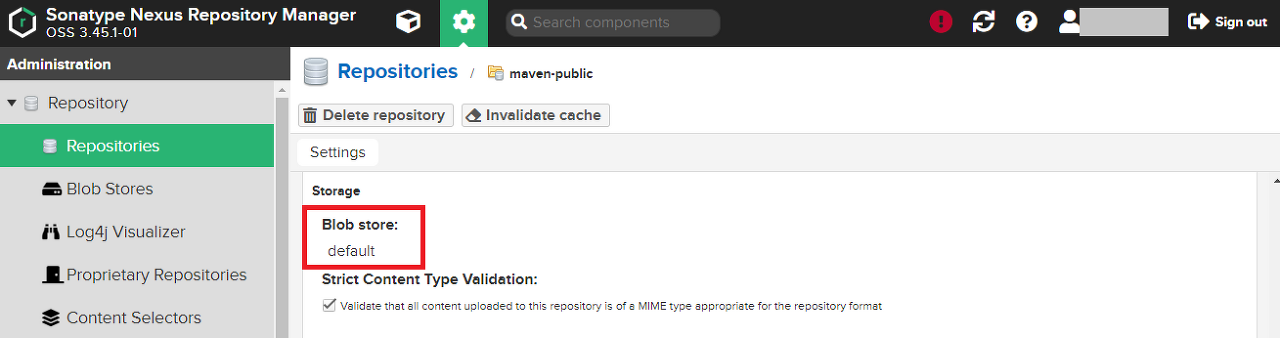 Blob Store의 default 저장소는 기본으로 제공되는 maven-public, maven-central, maven-releases, maven-snapshots만 사용한다.